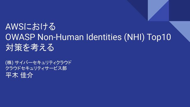 AWSにおける OWASP Non-Human Identities (NHI) Top10 対策を考える (株) サイバーセキュリティクラウド クラウドセキュリティサービス部