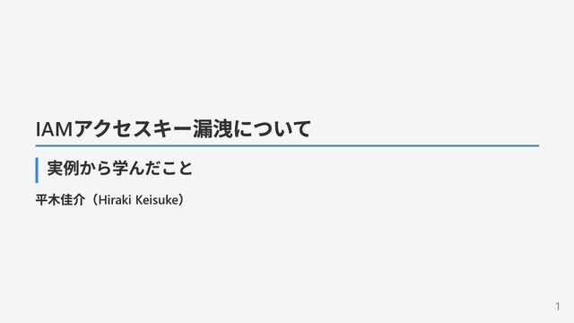 IAM アクセスキー漏洩について 実例から学んだこと 平木佳介(Hiraki Keisuke ) 1