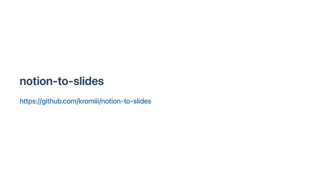 run the following command. $ npx @kromiii/notion-to-slides --url [your notion page url] It will open the browser and draw your notion page as the presentation slides.