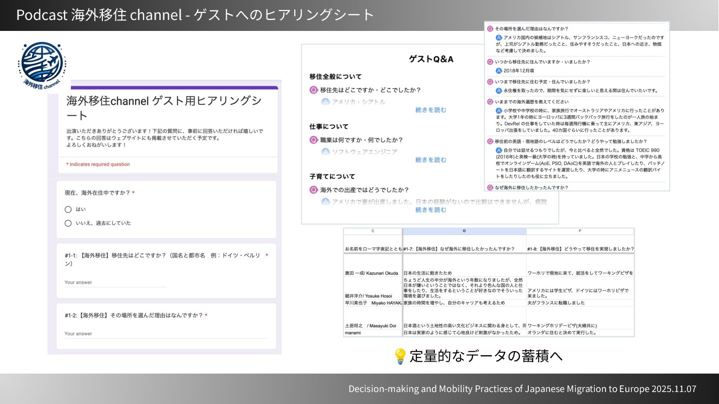 Podcast 海外移住 channel - ゲストへのヒアリングシート 💡定量的なデータの蓄積へ