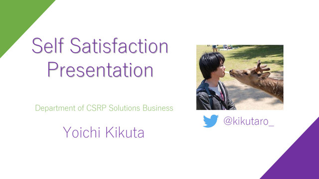 Yoichi Kikuta @kikutaro_ Self Satisfaction Presentation Department of CSRP Solutions