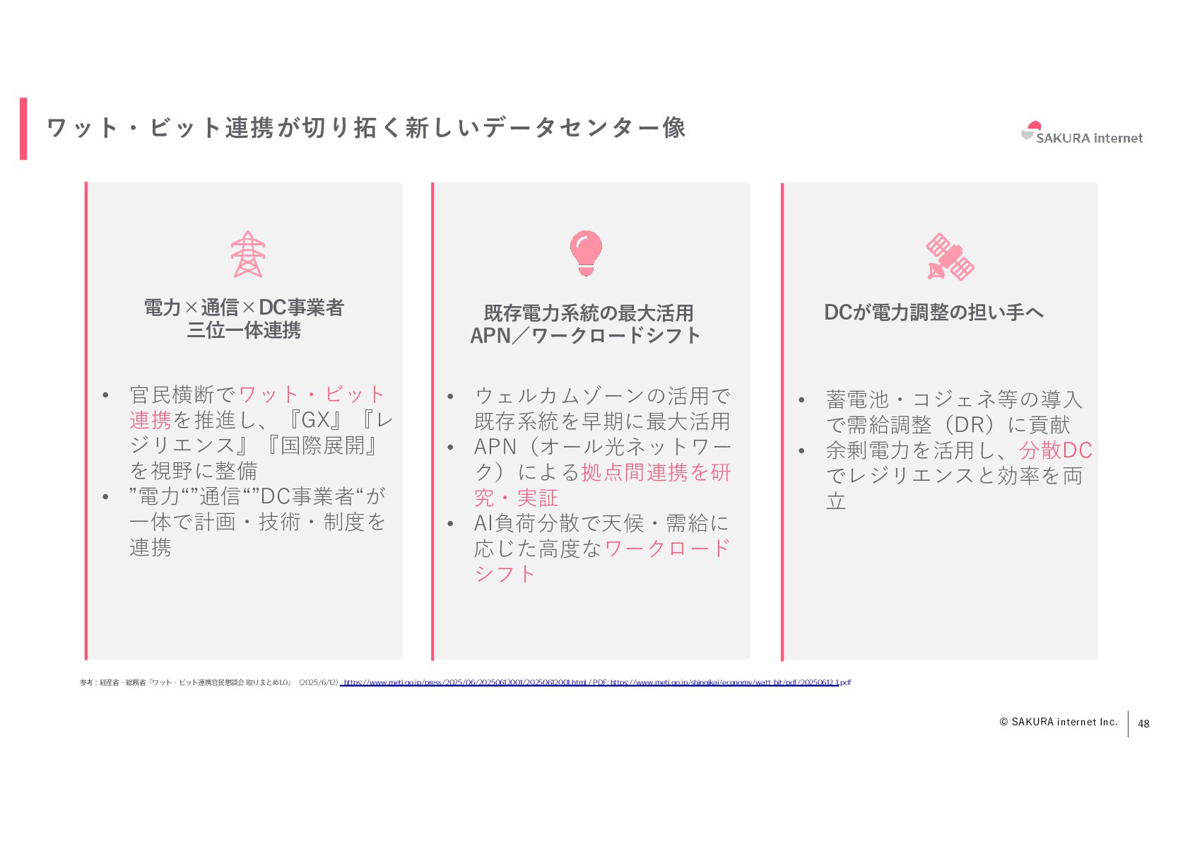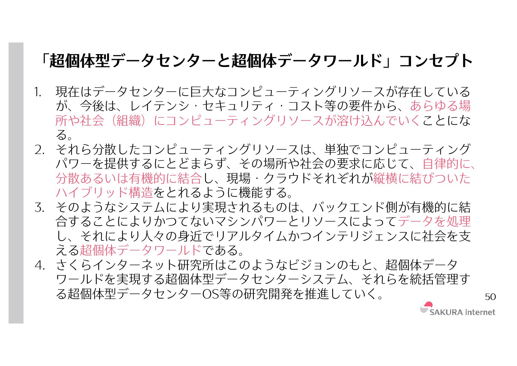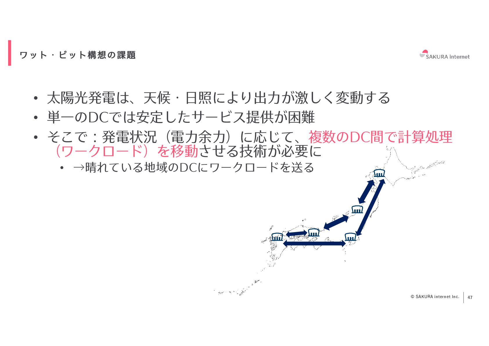 • 電気を運ぶのではなく、データ(DC)を電気のある場所へ運ぶ Transfer cost ... ... = Energy Productivity… Material >> Electricity >> Digital bits ( Power) (digital Function) x0000 : x00 : 1 100 1 By Digital Twin 8*%&ϓϩδΣΫτ׆ಈใࠂʢߐ࡚ઌੜʣΑΓ