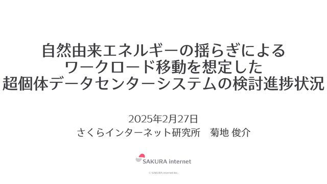 自然由来エネルギーの揺らぎによるワークロード移動を想定した超個体データセンターシステムの検討進捗状況