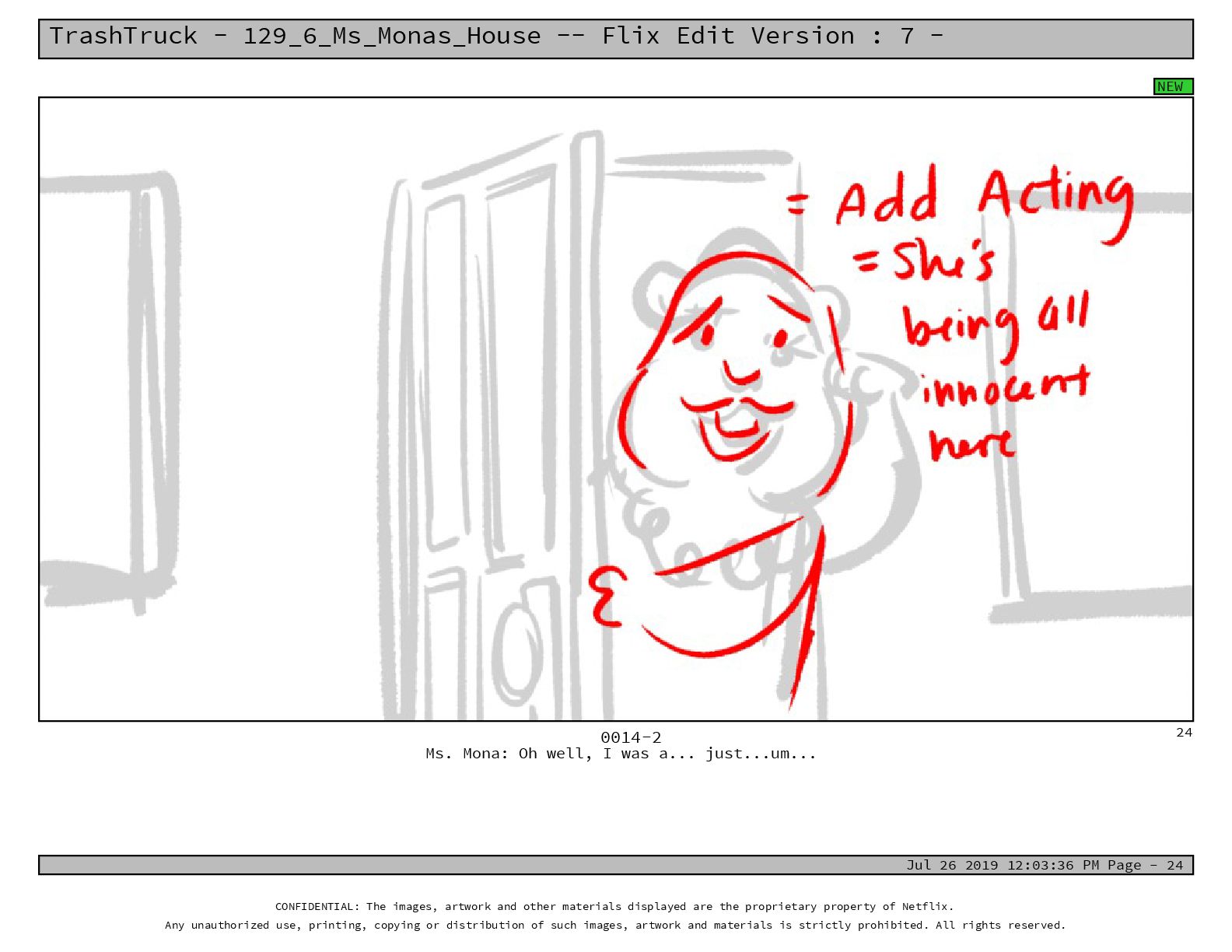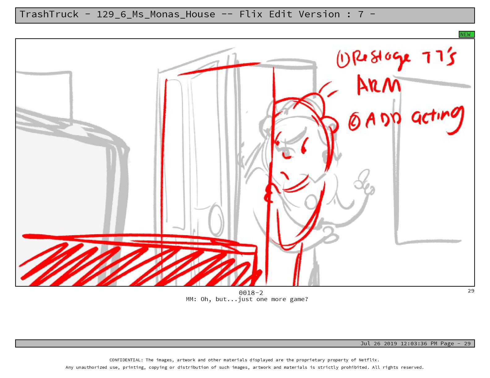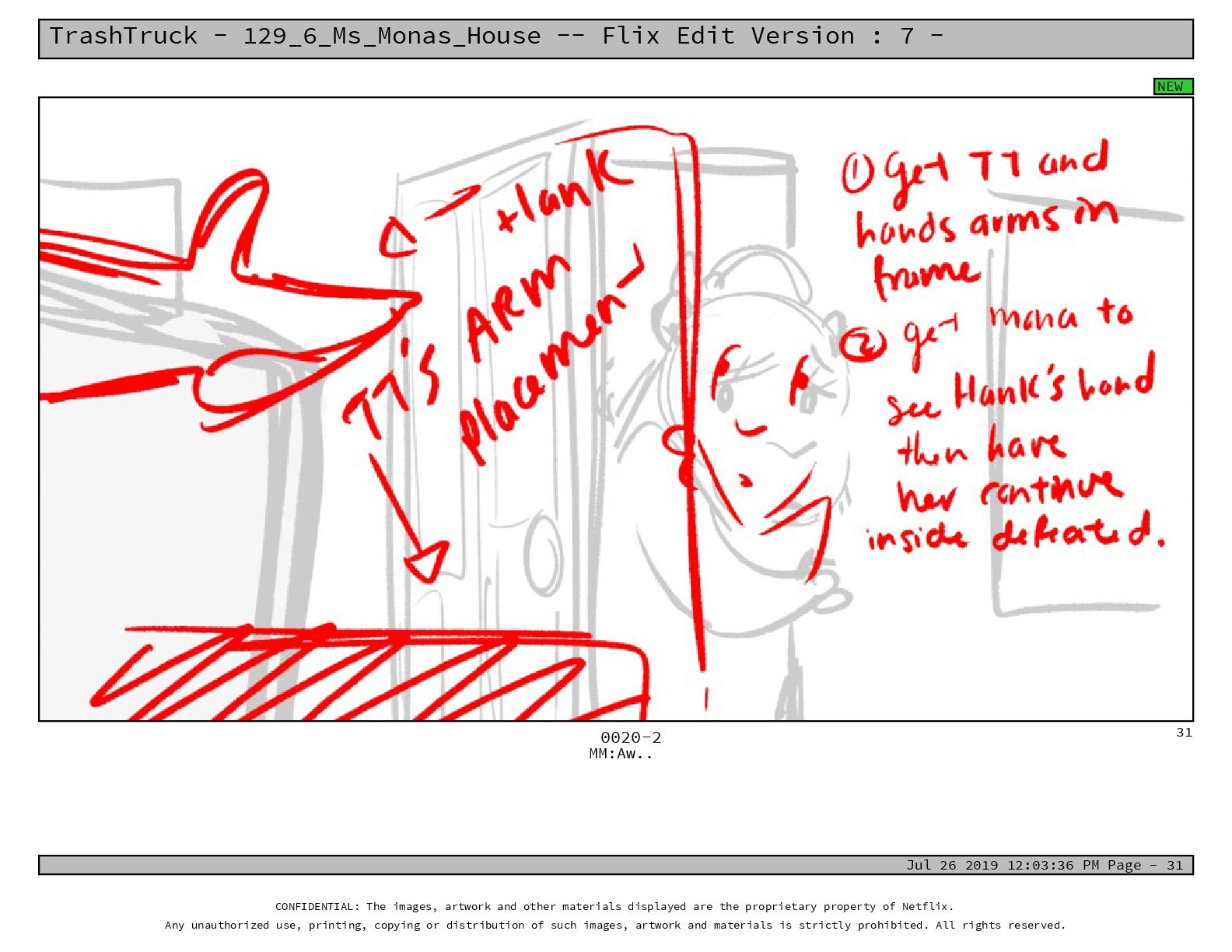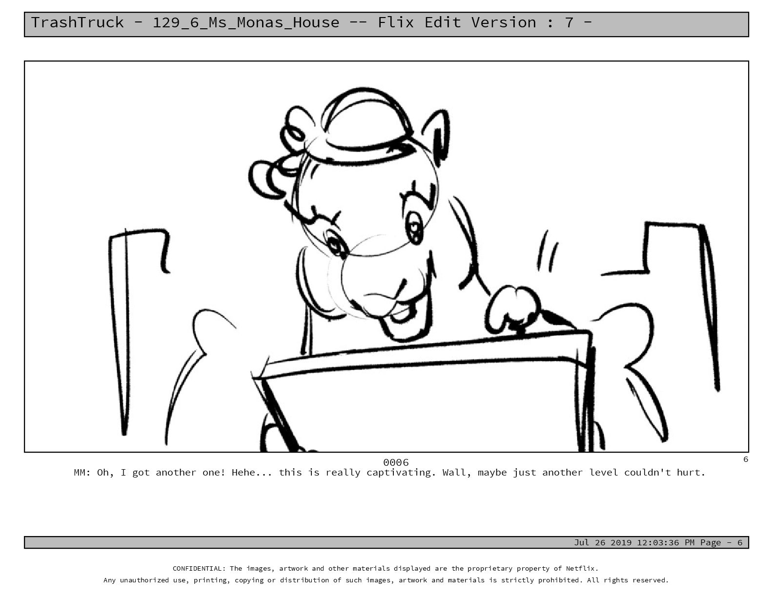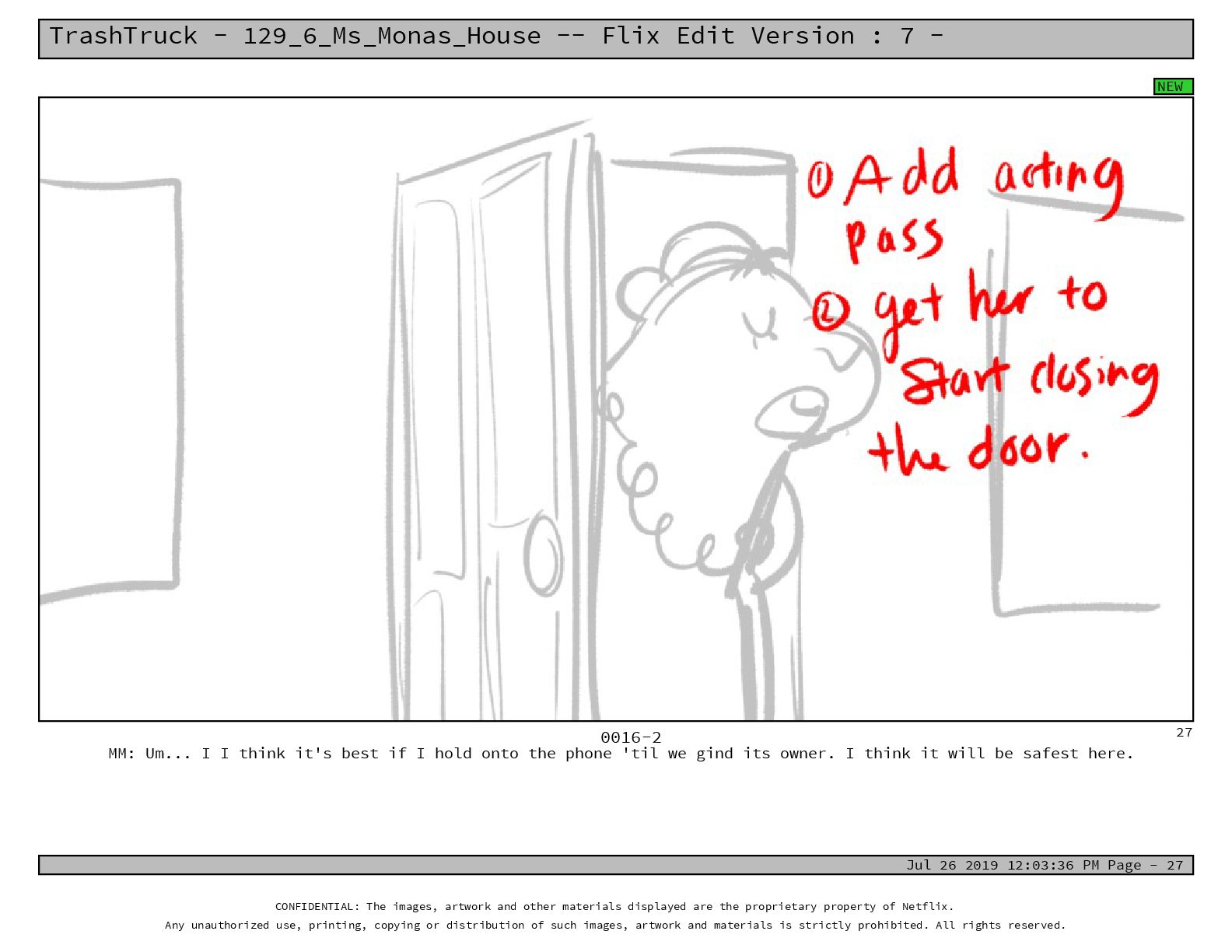 Jul 26 2019 12:03:36 PM Page - 38 CONFIDENTIAL: The images, artwork and other materials displayed are the proprietary property of Netflix. Any unauthorized use, printing, copying or distribution of such images, artwork and materials is strictly prohibited. All rights reserved. 0038-4 DONNY: where you going with my phone? cmon were jsut mesing around, were just having fun! MM: oh hank luv, just five more minutes! come back! 38 NEW