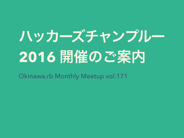 ϋοΧʔζνϟϯϓϧʔ 2016 ։࠵ͷ͝Ҋ Okinawa.rb Monthly Meetup vol.171