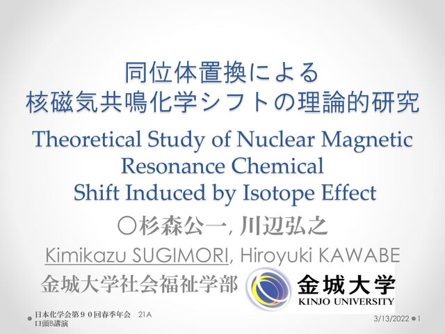 (PIMC) o M.C. Böhm et al., Chem. Phys. Lett. 322, 117 (2000). o J. Schulte et al., Mol. Phys. 99, 1155-1158 (2001). • Nuclear/Molecular Orbital method o S. Webb et al., J. Chem. Phys. 117,4106-4118 (2002). o H. Nakai, Int. J. Quantum Chem. 86, 511-517 (2002). o M. Tachikawa, Chem. Phys. Lett. 360, 494-500 (2002). For NMR property o Y. Kita, et al., J. Mol. Struct. (THEOCHEM) 912, 2-4 (2009). 3/13/2022 日本化学会第90回春季年会 1H9-28 4
