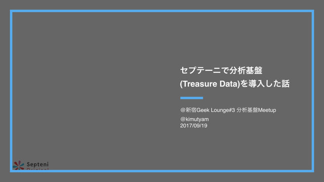 @৽॓Geek Lounge#3 ੳج൫Meetup @kimutyam 2017/09/19 ηϓςʔχͰੳج൫ (Treasure Data)Λಋೖͨ͠