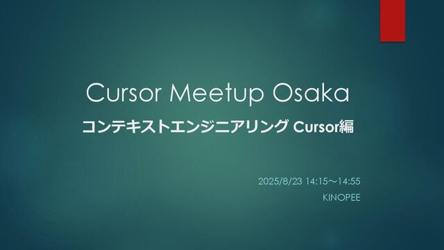 Cursor Meetup Osaka コンテキストエンジニアリング Cursor編 2025/8/23 14:15〜14:55 KINOPEE