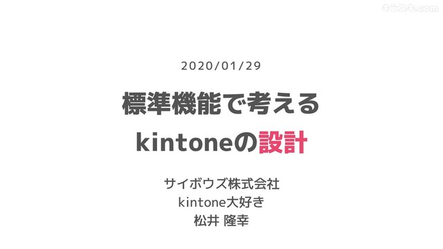 標準機能で考える kintoneの設計 サイボウズ株式会社 kintone大好き 松井 隆幸 2020/01/29