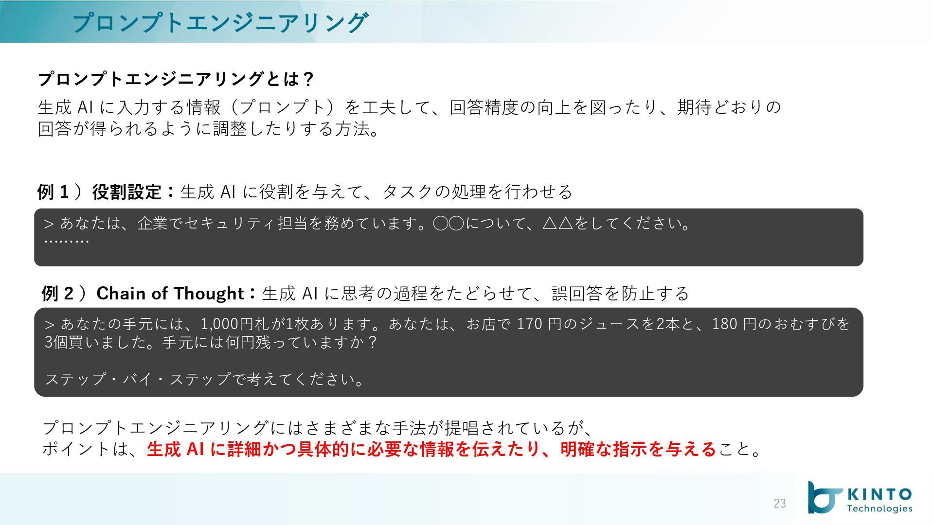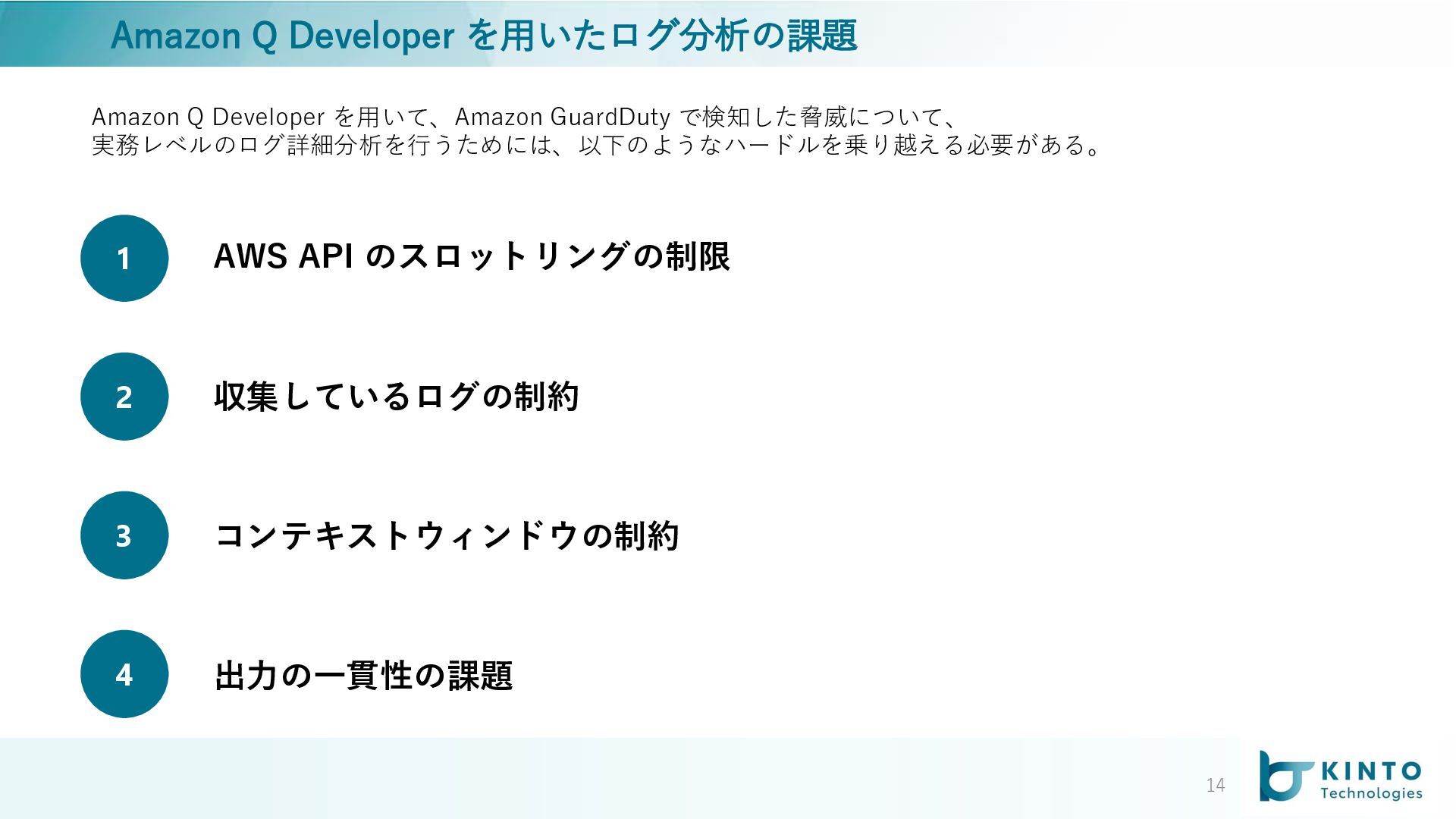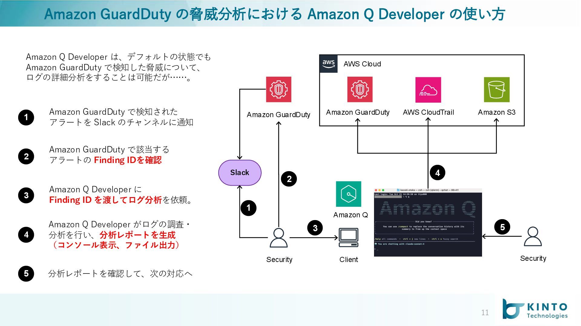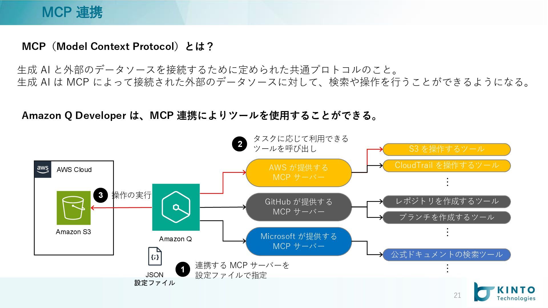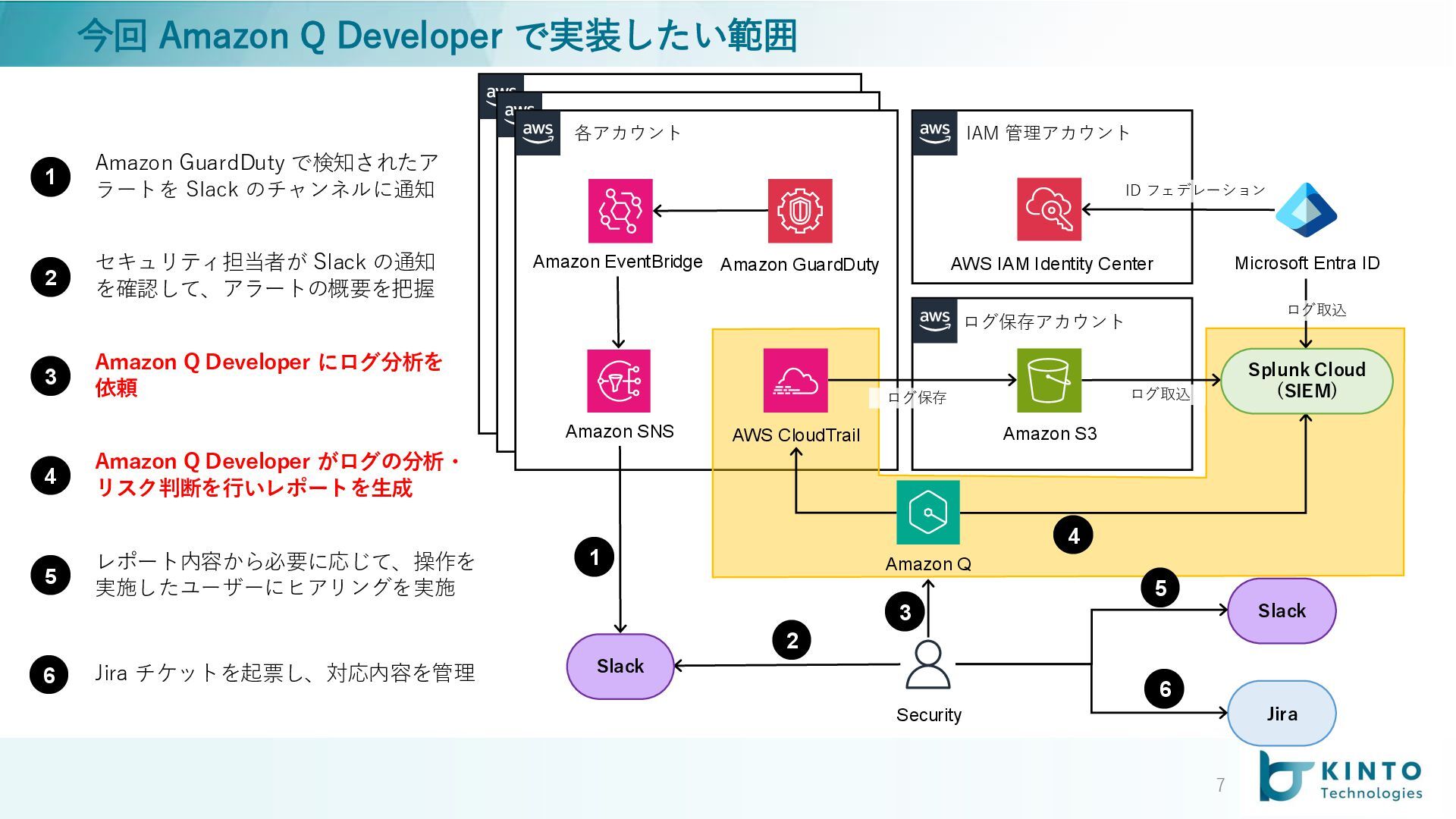 内容 具体例 システムの構成 ・どこにログが保存されているか ・どんなログが保存されているか CloudTrail のログは Splunk に保存されています。 ログの調査手順 ・どのツールを使用するか ・何を調査するのか Splunk MCP Server を使用して、該当ユーザーの脅 威検出時のログイン状況を調査してください。 出力形式 ・どの形式で出力するのか ・どんな情報を含めるのか レポートは、Markdown 形式で出力してください。 レポートは、次の章立てで作成してください コマンドの具体例 ・Splunk の検索クエリなど 認証状況の確認では、以下のコマンドを実行してください。 ‘index=example userPrincipalName=“<メールアドレス>” | stats count by status.errorCode, status.failureReason |sort -count' 禁止事項の明記 ・実行してはいけない操作は何か ・出力に含めない内容は何か ・推測や仮定に基づく関連付けはしないでください。 ・自分で日付から曜日を計算しないでください。