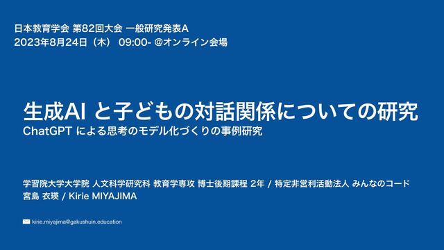 本研究は、生成AI、特に大規模言語モデルであるChatGPTを使用した教育の文脈における、子どもたちとAIの対話関係を分析するものである。教育学の分野では、AIに関する議論が一般的に技術利用の観点から行われているが、生成AIの教育への影響に焦点を当てることにより、新たな知見を得ることを目指している。