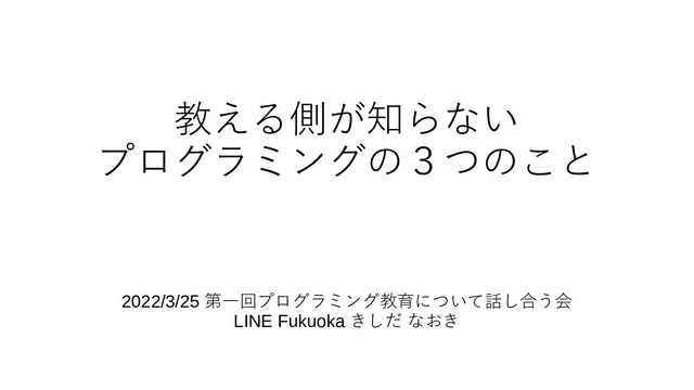 教える側が知らない プログラミングの3つのこと 2022/3/25 第一回プログラミング教育について話し合う会 LINE Fukuoka きしだ なおき