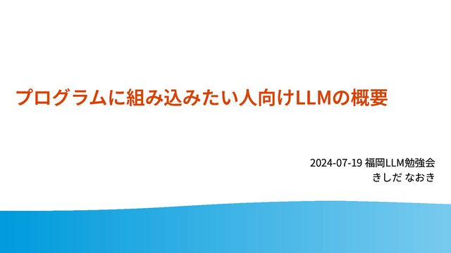 プログラムに組み込みたい人向けLLMの概要 2024-07-19 福岡LLM勉強会 きしだ なおき