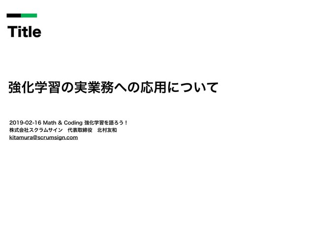 ڧԽֶशͷ࣮ۀͷԠ༻ʹ͍ͭͯ .BUI$PEJOHڧԽֶशΛޠΖ͏ʂ גࣜձࣾεΫϥϜαΠϯɹදऔకɹଜ༑ LJUBNVSB!TDSVNTJHODPN 5JUMF