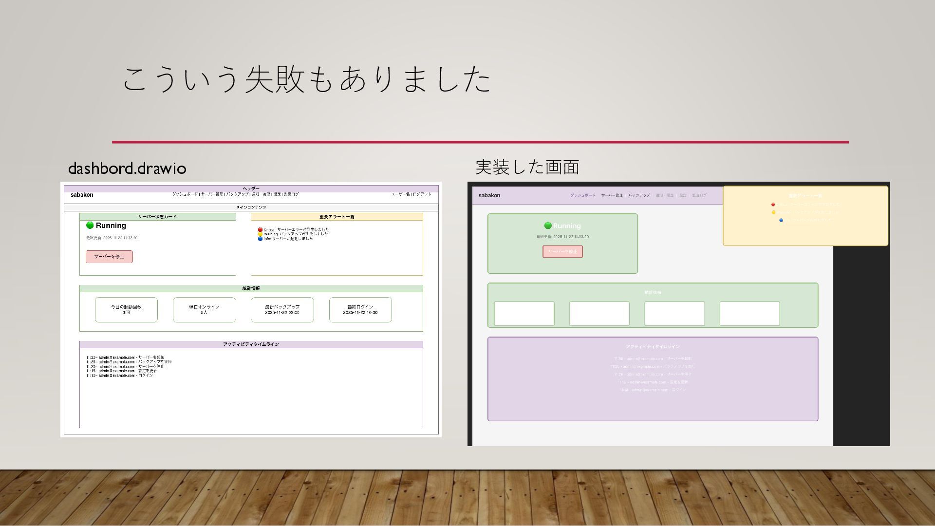こういう失敗もありました dashbord.drawio 実装した画面