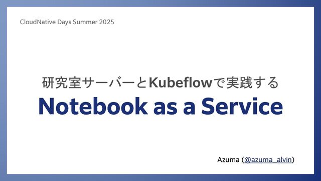 Azuma (@azuma_alvin) CloudNative Days Summer 2025 研究室サーバーとKubeflowで実践する Notebook as a