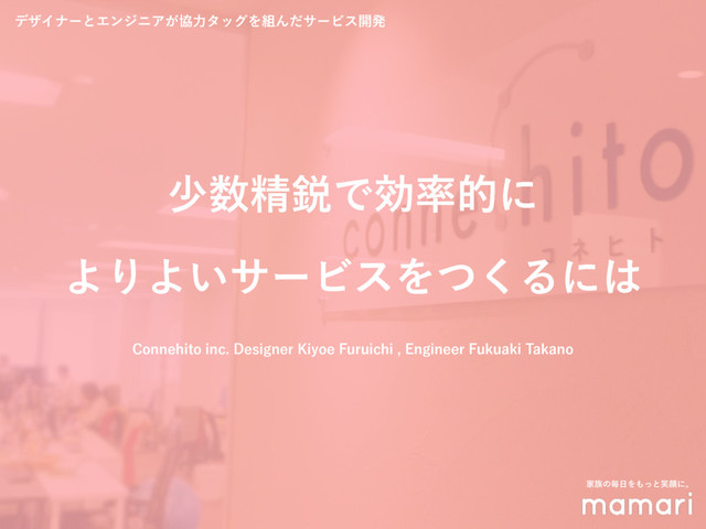 Connehito inc. デザイナー 古市聖恵 (@kiyoe_furuichi) , エンジニア 高野福晃 (@fortkle)