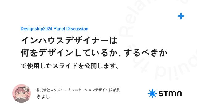 Designship2024 Panel Discussion インハウスデザイナーは 何をデザインしているか、 するべきか で使用したスライドを公開します。 株式会社スタメン コミュニケーションデザイン部 部長