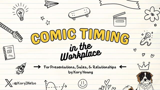Comic Timing in the Workplace (for Presentations, Sales, & Relationships) as presented by Kory Hoang at brightonSEO San Diego on November 10, 2023.
