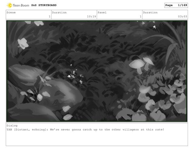 our food, everything we’ve packed for the next month, is down the waterfall. You even lost the *redberries! You know they’re my favourite... SnS STORYBOARD Page 21/169
