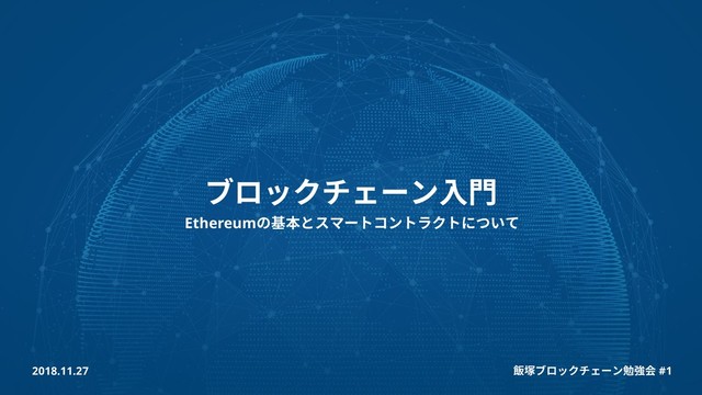 飯塚ブロックチェーン勉強会第一回のコンテンツです。 これからブロックチェーンやスマートコントラクト開発をやってみたいという人向けに、Ethereumやスマートコントラクトの概観をお話します。