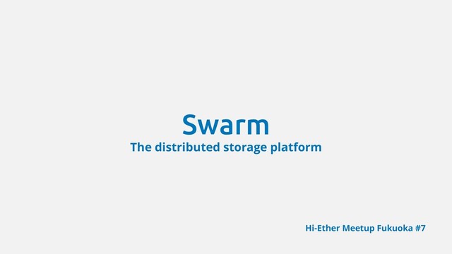 Swarm The distributed storage platform Hi-Ether Meetup Fukuoka #7