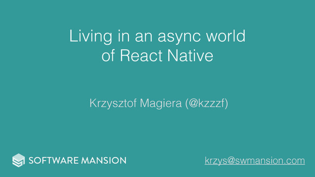 React Native’s asynchronous model of bridging between UI code written in JS and the UI thread that runs most of the native code has many advantages to the app users. But in same cases it may become a developer’s nightmare to deal with, especially when it comes to complex touch interactions, animations or "that damned AsyncStorage". In my talk I’ll be giving some tips on how to not get lost in the asynchronous world of React Native app development. We will discuss some common mistakes and important app and library design principles that are imposed by the asynchronous nature of the bridge. At the end of the presentation we give a short into to react-native-gesture-handler library.