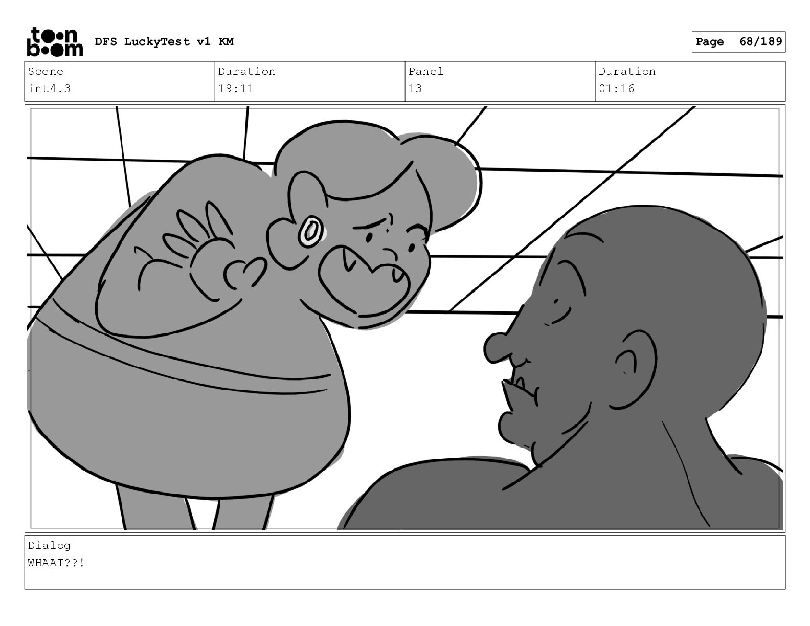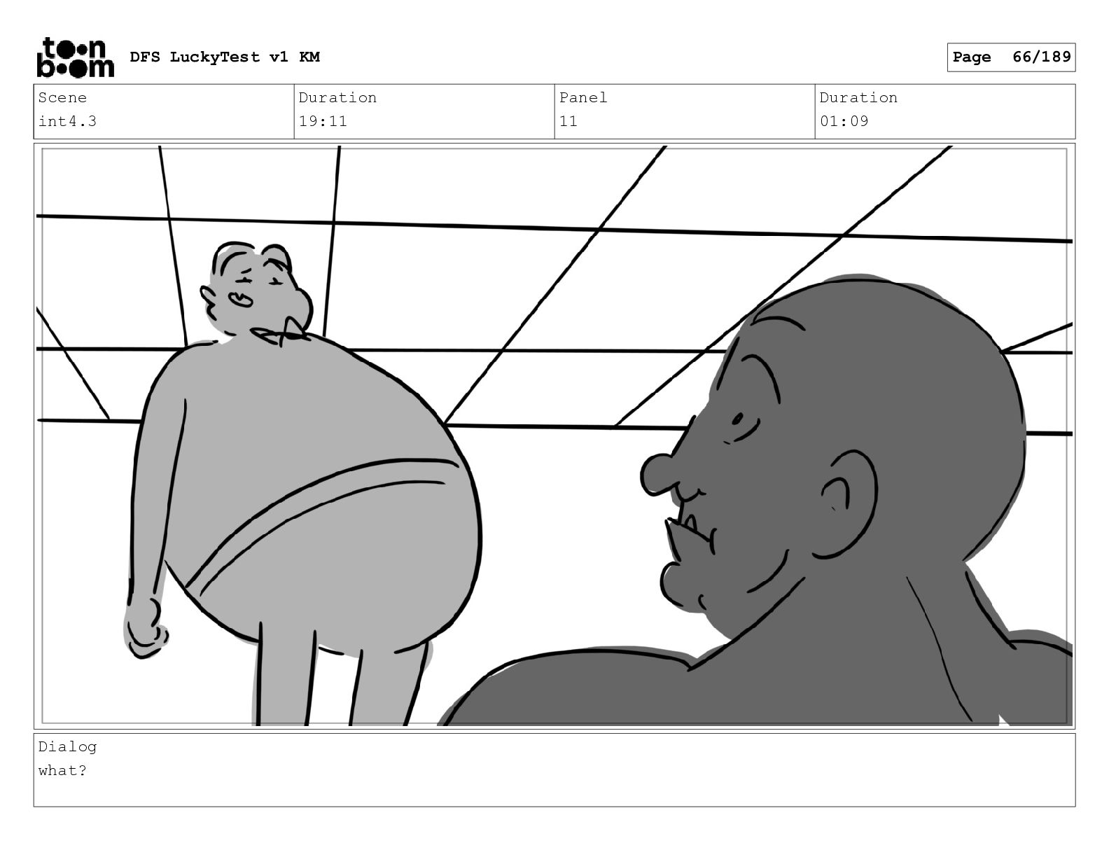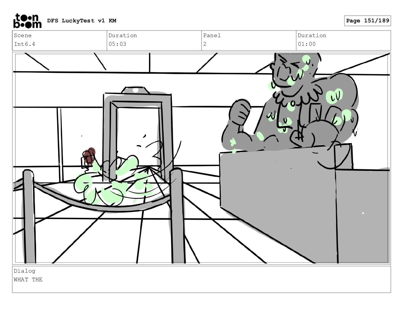 Scene Int6.4 Duration 05:03 Panel 2 Duration 01:00 Dialog WHAT