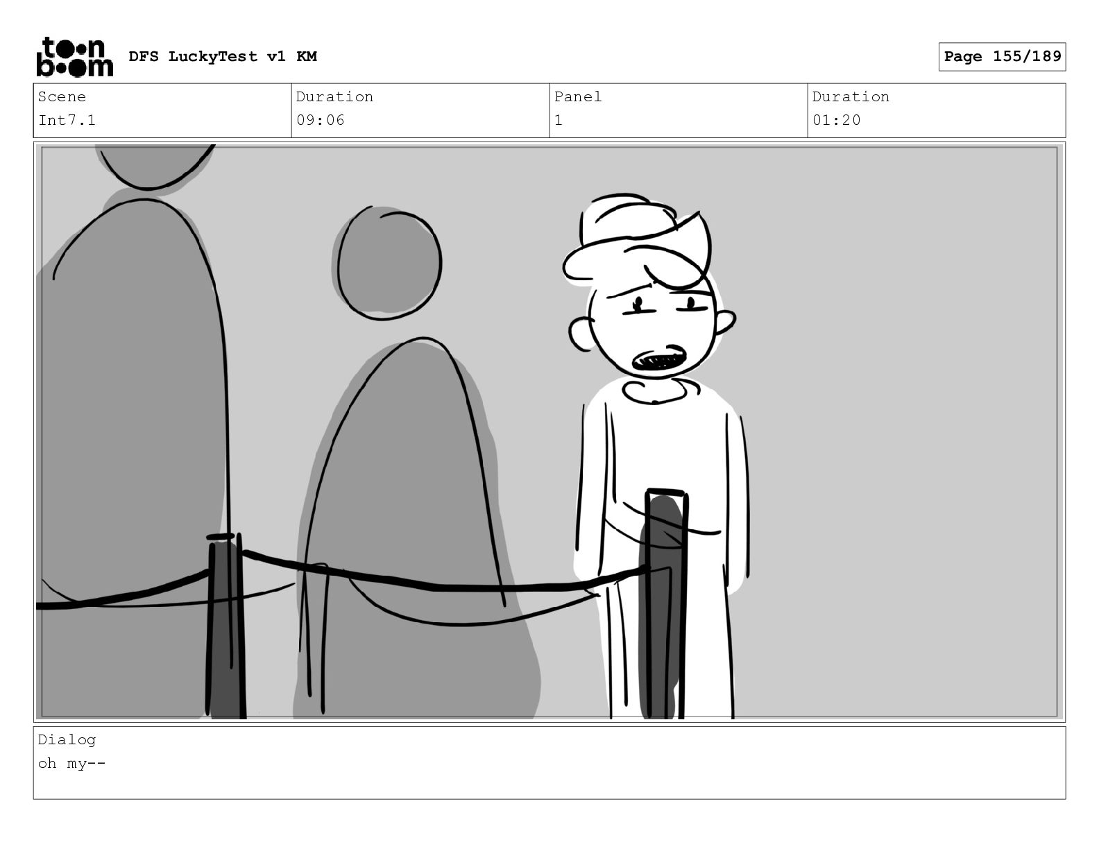 Scene Int7.1 Duration 09:06 Panel 1 Duration 01:20 Dialog oh