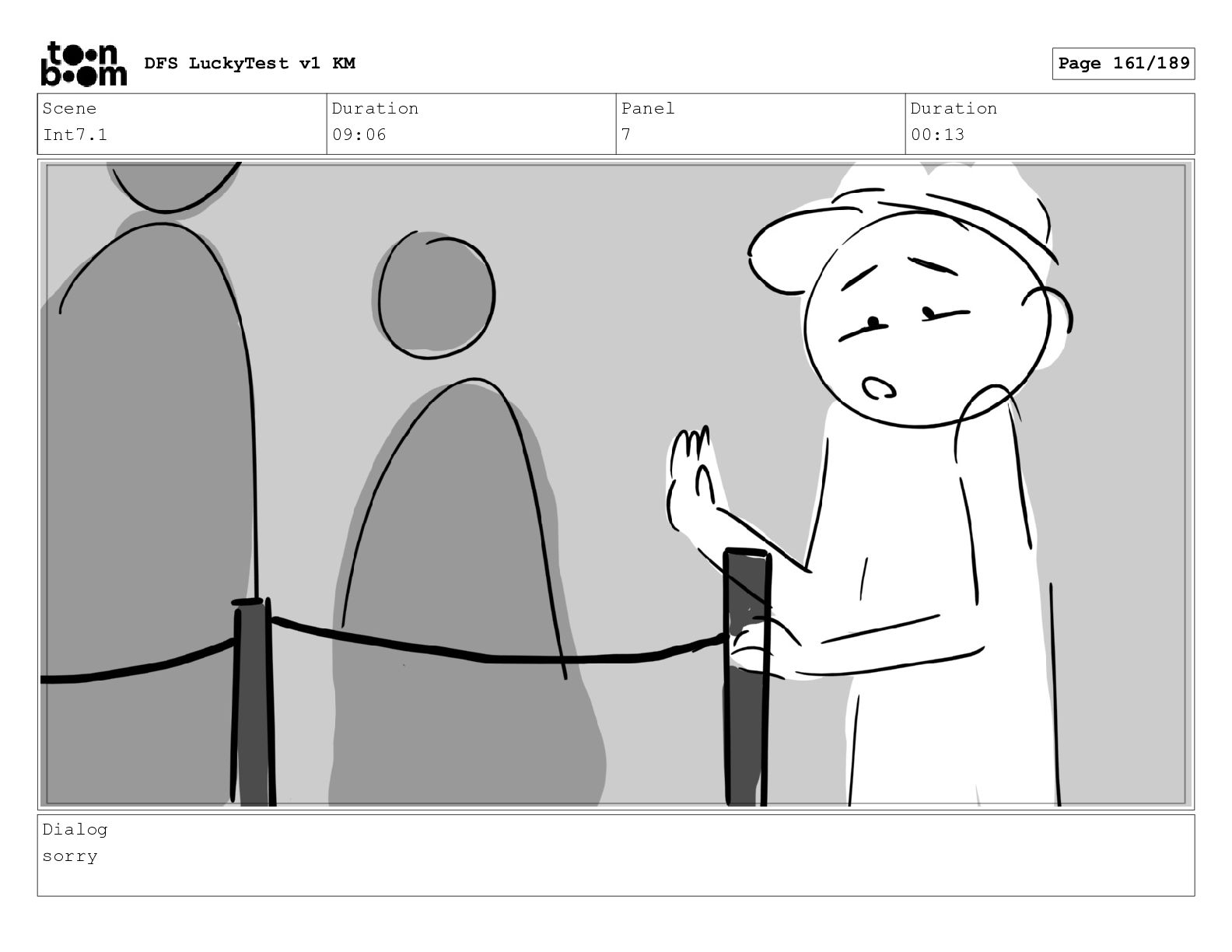 Scene Int7.1 Duration 09:06 Panel 7 Duration 00:13 Dialog sorry