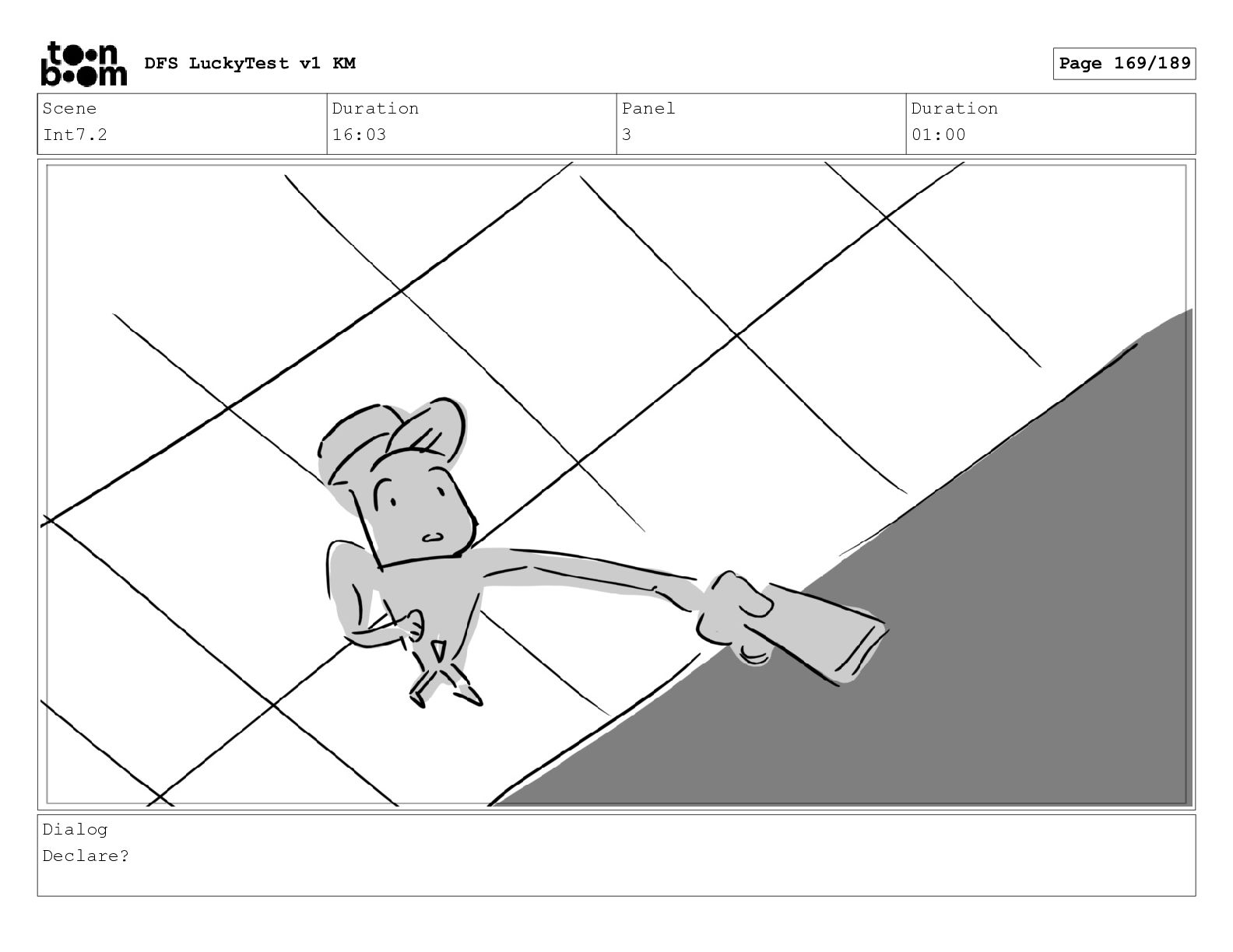 Scene Int7.2 Duration 16:03 Panel 3 Duration 01:00 Dialog Declare?