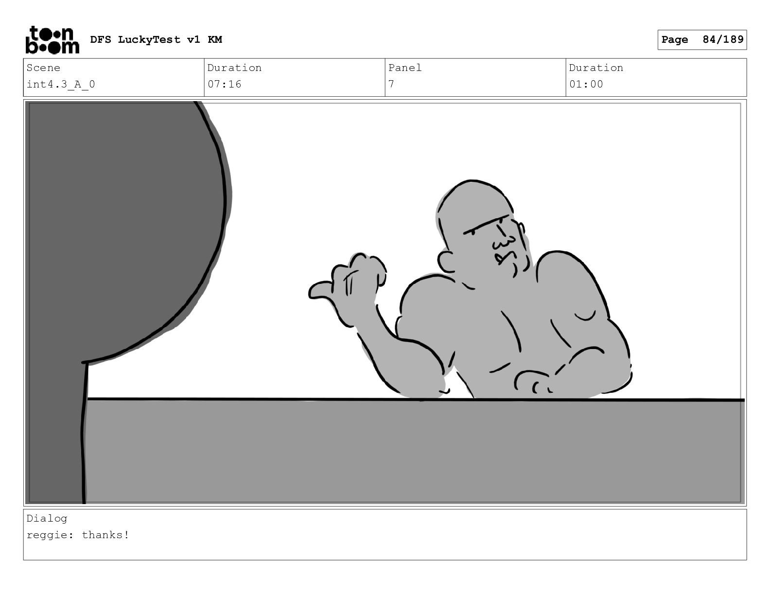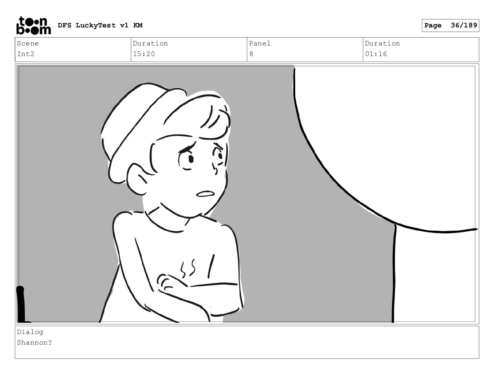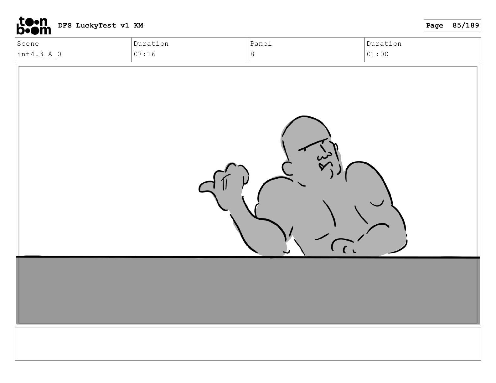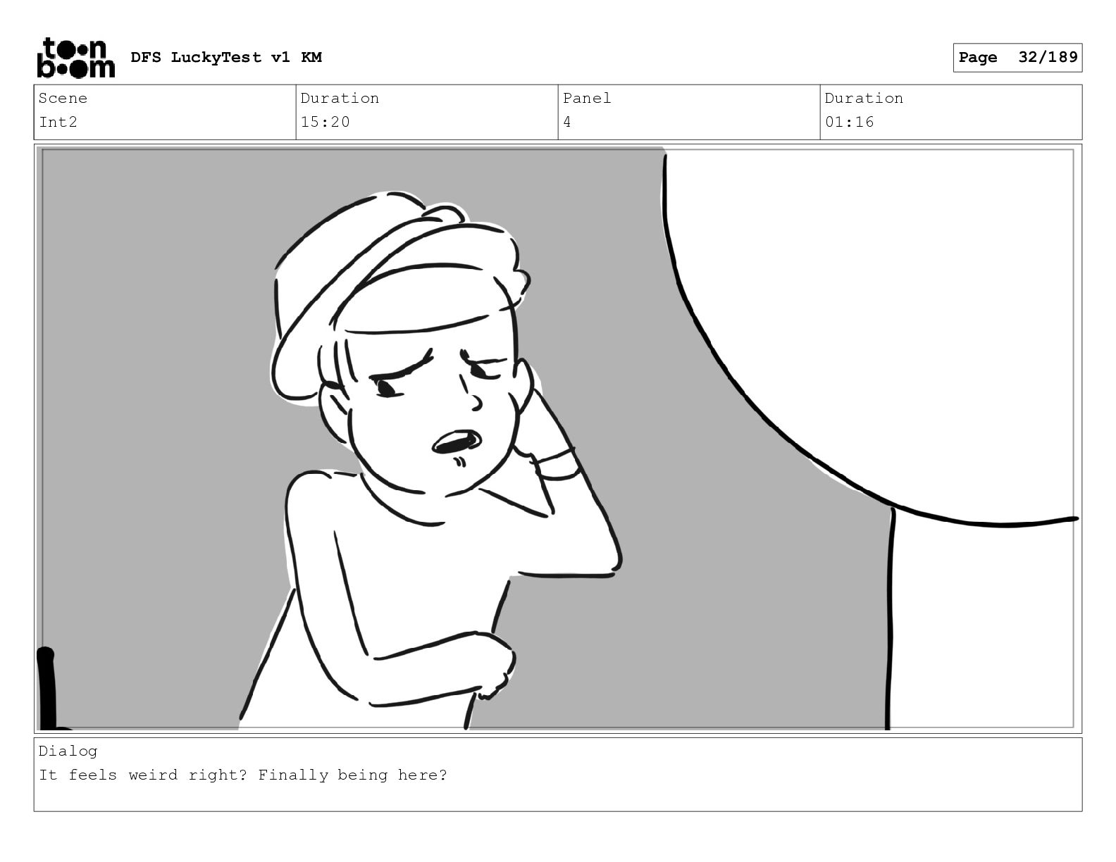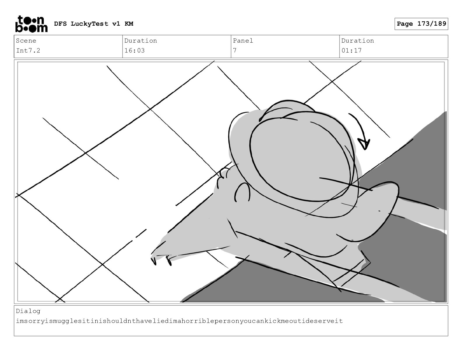 Scene Int7.2 Duration 16:03 Panel 8 Duration 01:00 Dialog here.