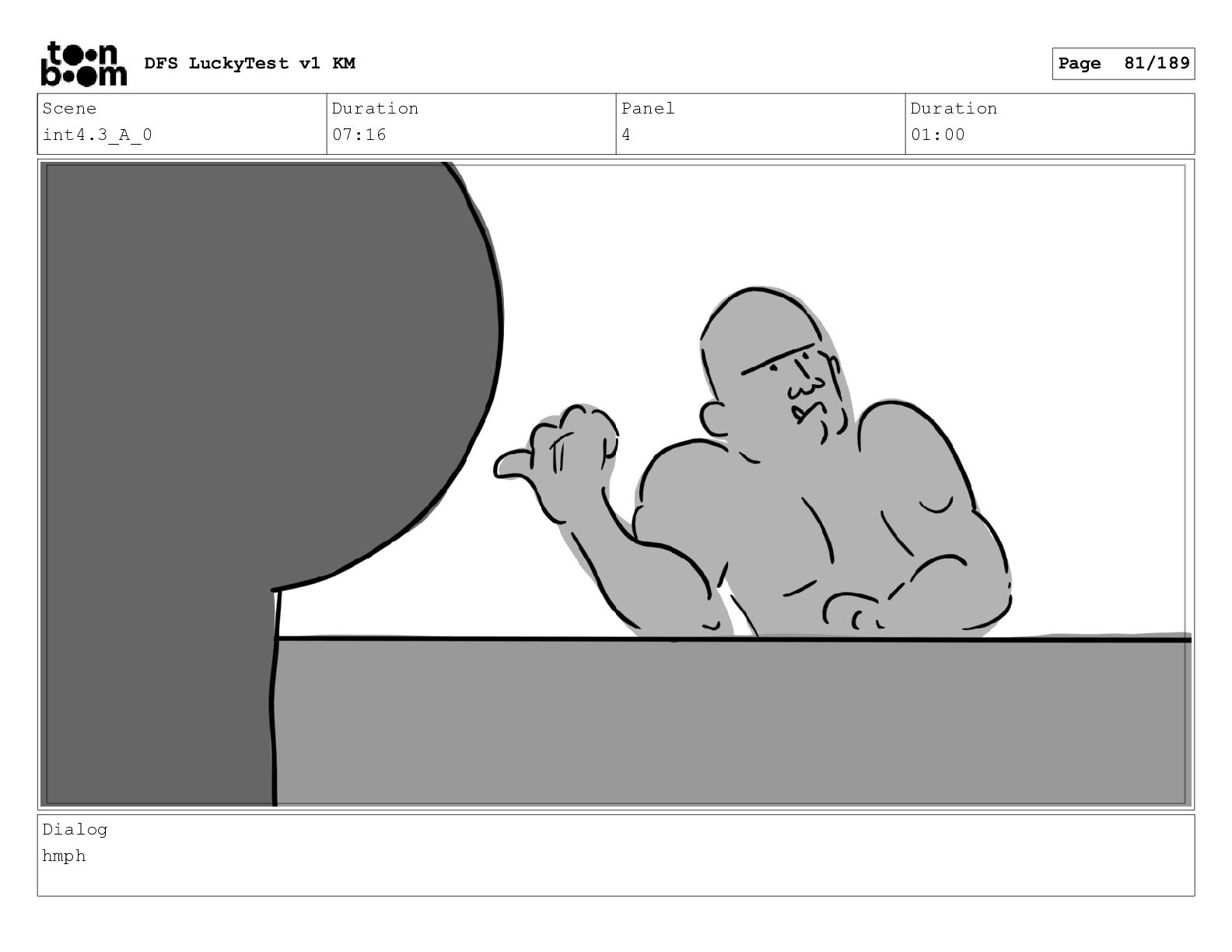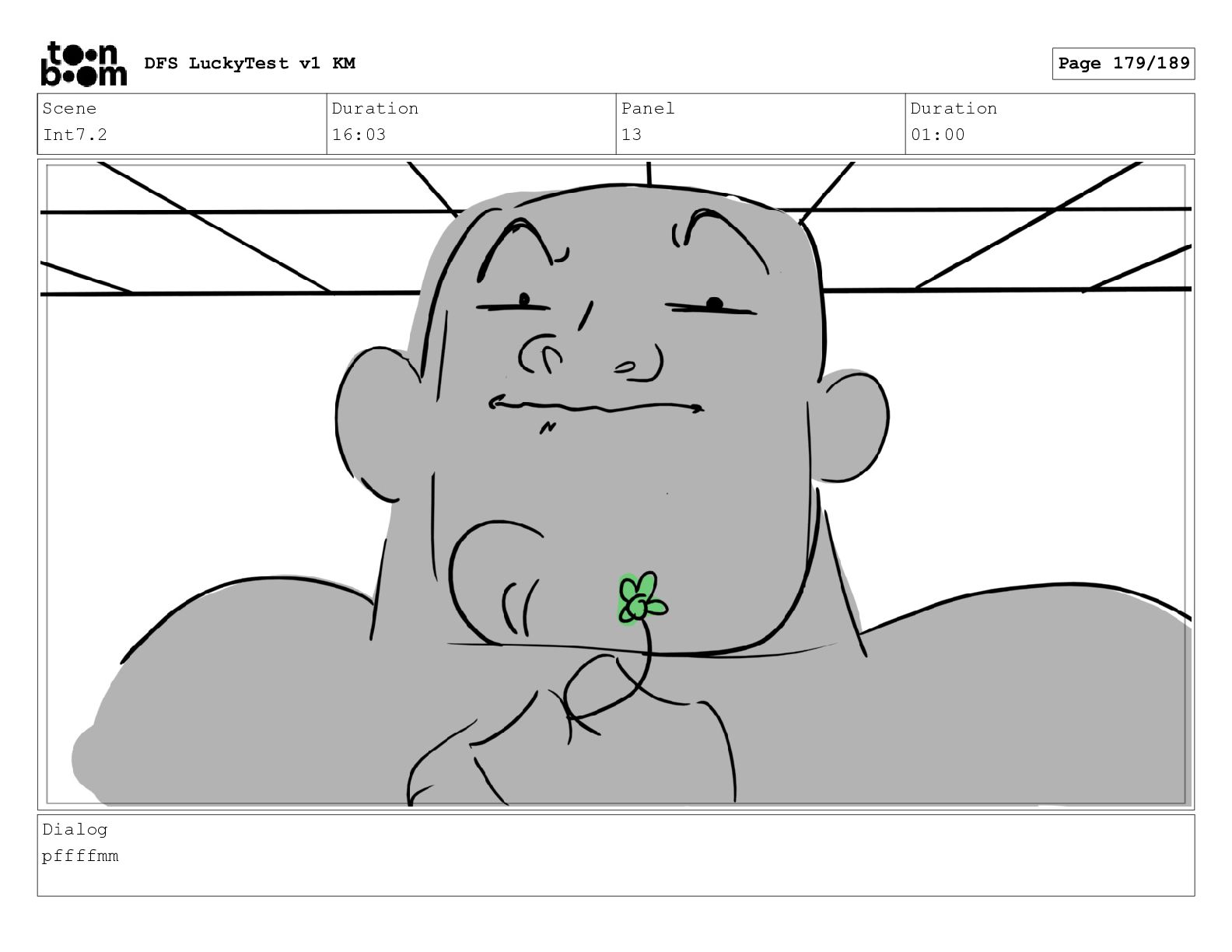 Scene Int7.2 Duration 16:03 Panel 13 Duration 01:00 Dialog pffffmm