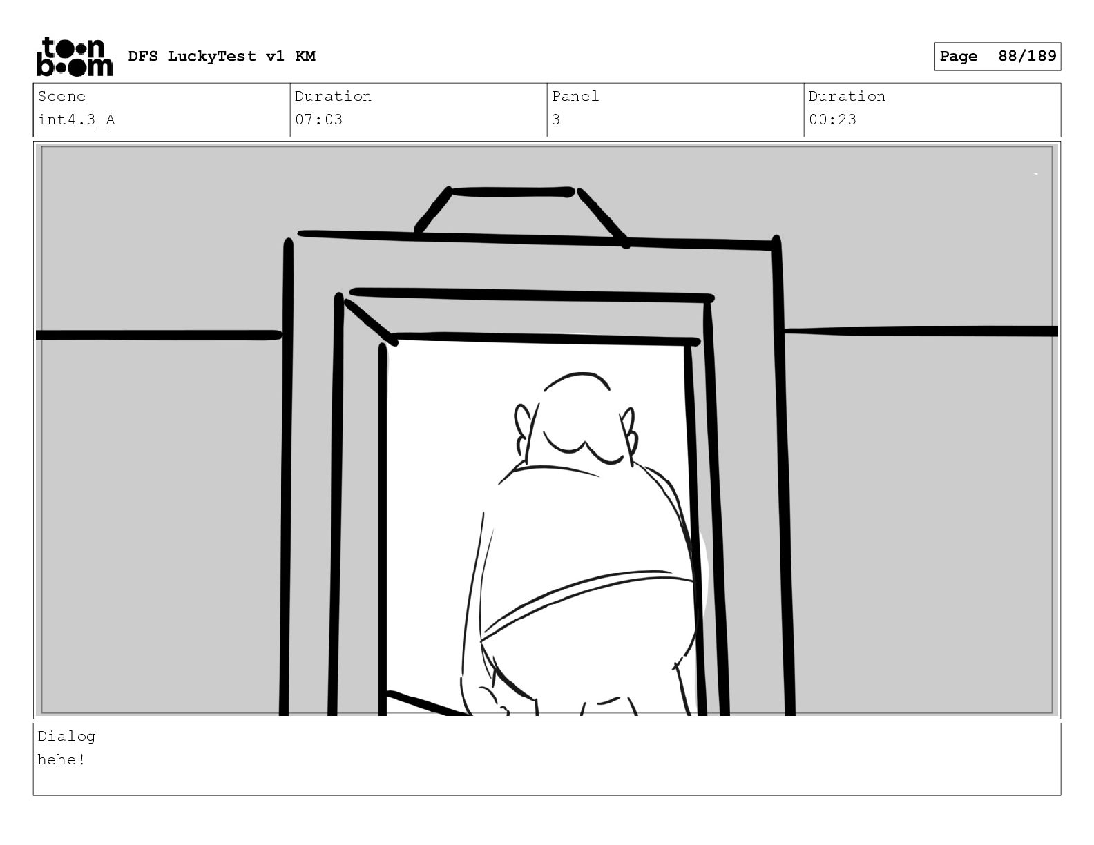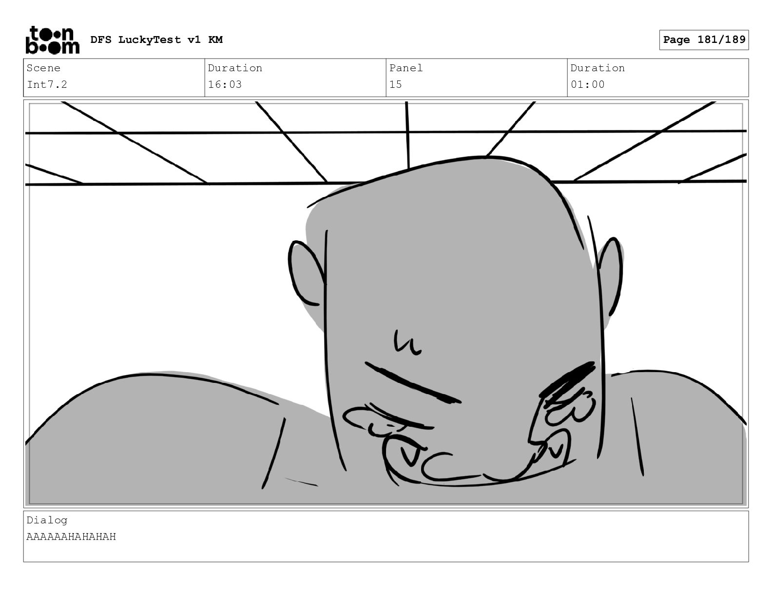 Scene Int7.2 Duration 16:03 Panel 15 Duration 01:00 Dialog AAAAAAHAHAHAH