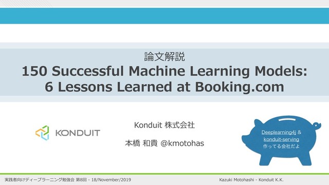 旅⾏の⽂脈を予測 - ⼦供連れか否かなど (b) レビューを始めとするコンテンツを 集めてどれを表⽰するか - なぜその施設が⼈気か要約 (c) 価格やオプションのトレンド 5 Ϟσϧ׆༻ͷ۩ମྫ (a) Traveller Context Model (b) Content Curation Model (c) Content Augmentation Model Figure 1: Examples of Application of Machine Learning likely is that a user is shopping for a family trip. Usually, Family noisy and vast, making it hard to be consumed by users. Content Curation is the process of making content accessible to humans. For example, we have collected over 171M reviews in more than 1.5M properties, which contain highly valuable information about the service a particular accommodation provides and a very rich source of selling points. A Machine Learning model "curates" reviews, con- structing brief and representative summaries of the outstanding aspects of an accommodation (Figure 1(b)). 2.1.6 Content Augmentation. The whole process of users brows- ing, selecting, booking, and reviewing accommodations, puts to our disposal implicit signals that allow us to construct deeper un- derstanding of the services and the quality a particular property or destination can oer. Models in this family derive attributes of a property, destination or even specic dates, augmenting the explicit service oer. Content Augmentation diers from Content Curation in that curation is about making already existing content easily accessible by users whereas augmentation is about enriching an existing entity using data from many others. To illustrate this idea, we give two examples: • Great Value: Booking.com provides a wide selection of prop- erties, oering dierent levels of value in the form of ameni- ties, location, quality of the service and facilities, policies, and many other dimensions. Users need to assess how the price asked for a room relates to the value they would obtain. Applied Data Science Track Paper KDD ’19, August 4–8, 2019, Anchorage, AK, USA