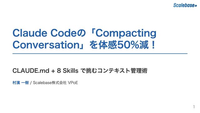 Claude Codeの「Compacting Conversation」を体感50%減! CLAUDE.md + 8 Skills で挑むコンテキスト管理術 村濱 一樹