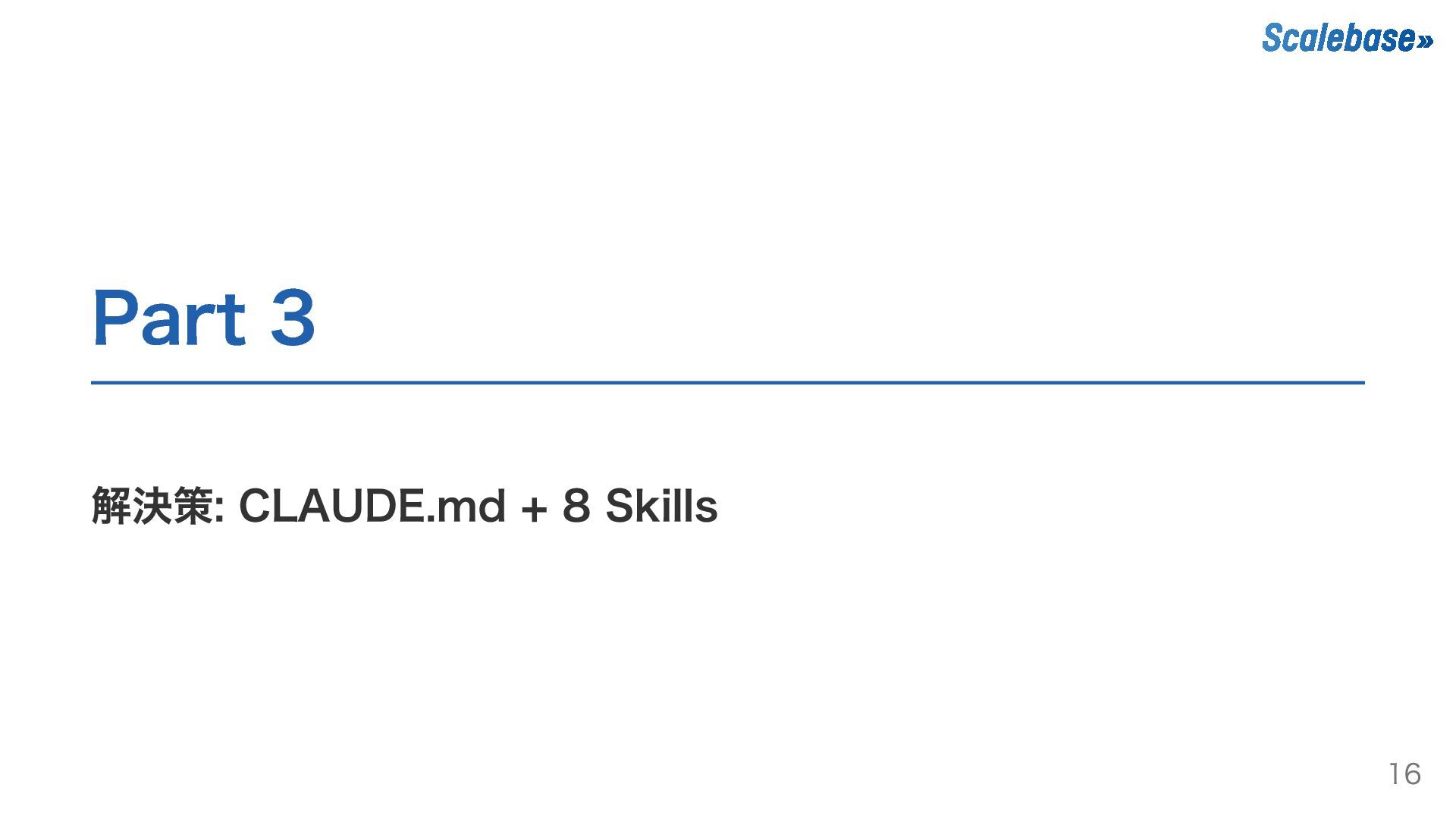 Part 3 解決策: CLAUDE.md + 8 Skills 16