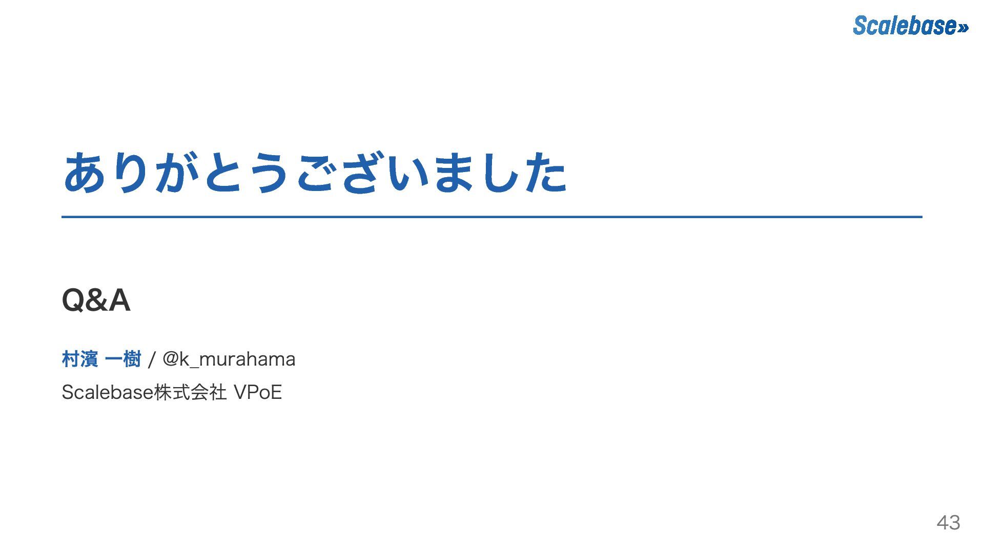 ありがとうございました Q&A 村濱 一樹 / @k_murahama Scalebase株式会社 VPoE 43
