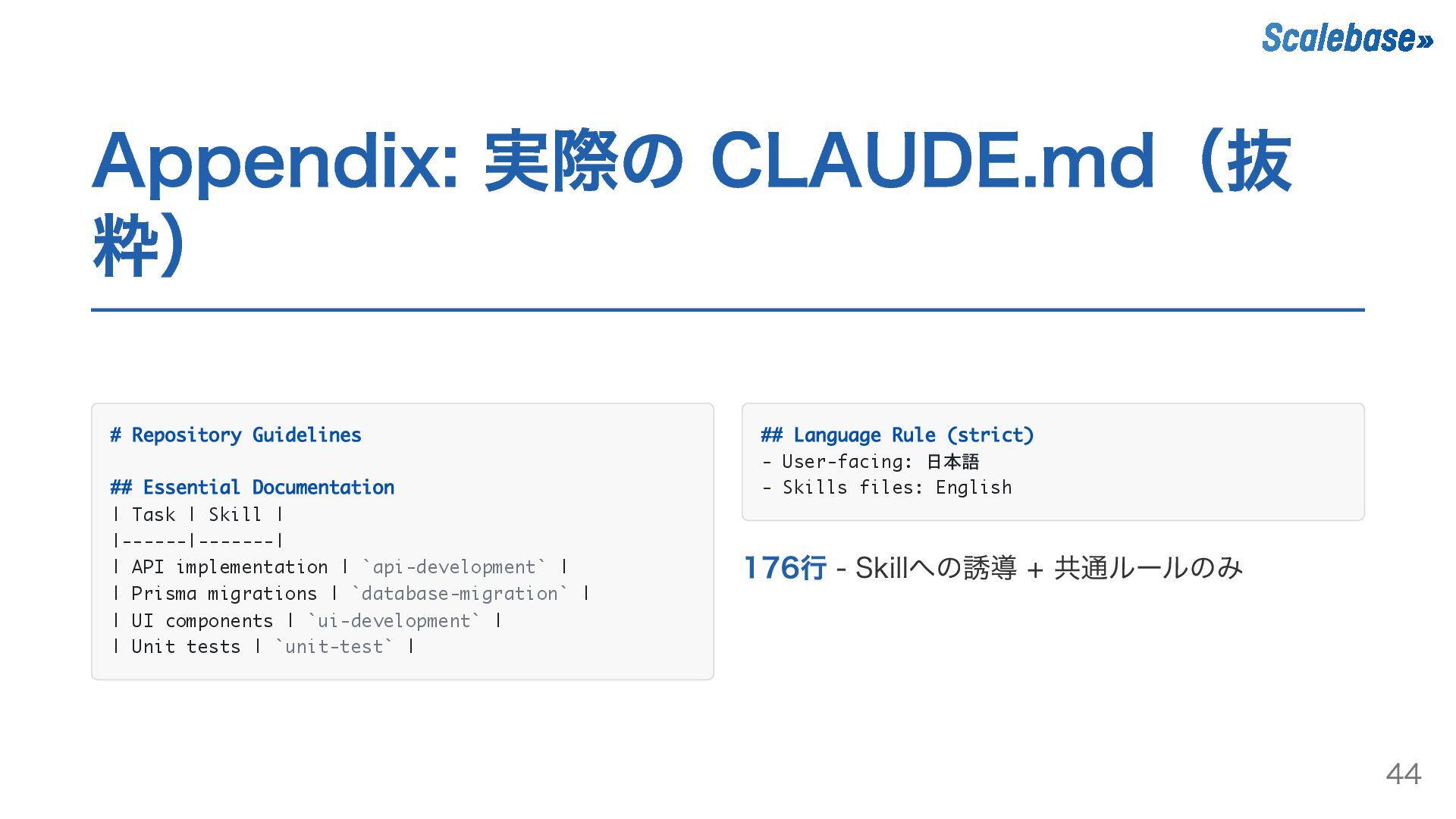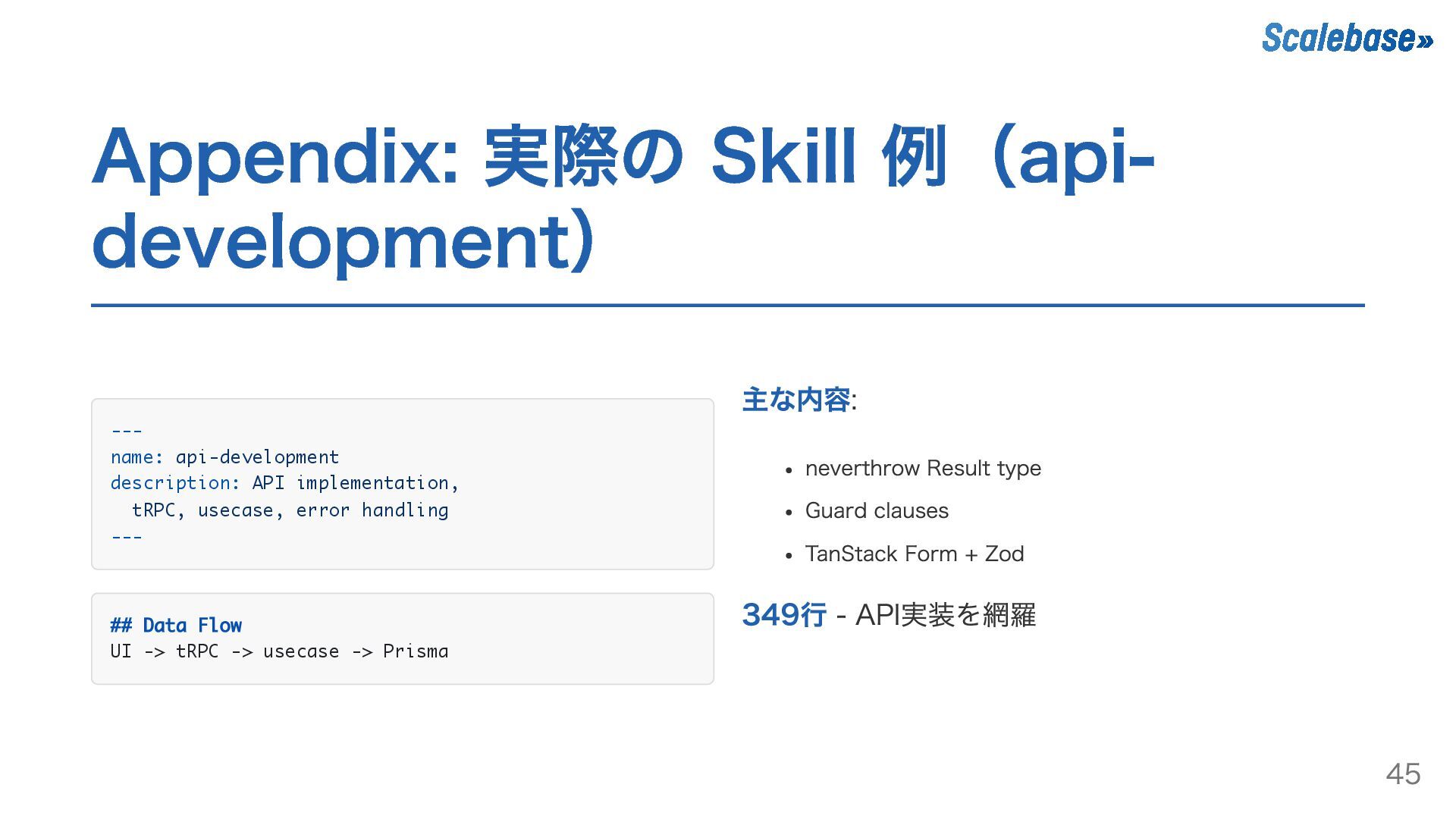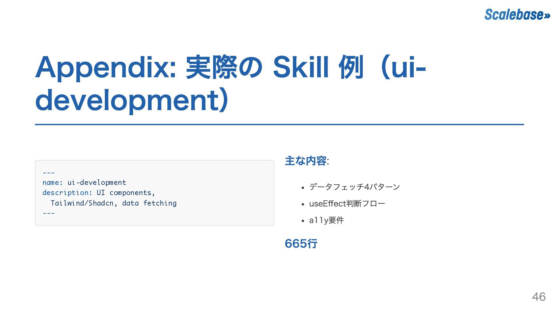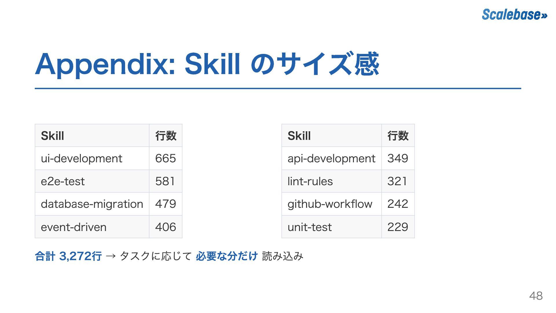Appendix: Skill のサイズ感 Skill 行数 ui-development 665 e2e-test 581 database-migration