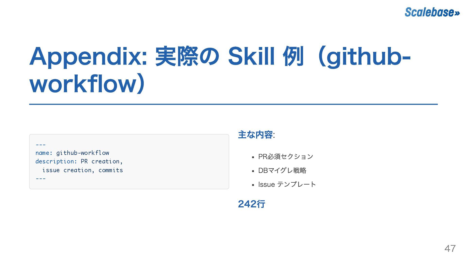 Appendix: 実際の Skill 例(github- workflow) --- name: github-workflow description: PR