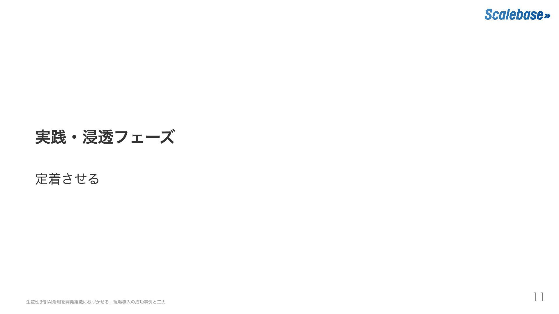 実践・浸透フェーズ 定着させる 生産性3倍!AI活用を開発組織に根づかせる:現場導入の成功事例と工夫 11
