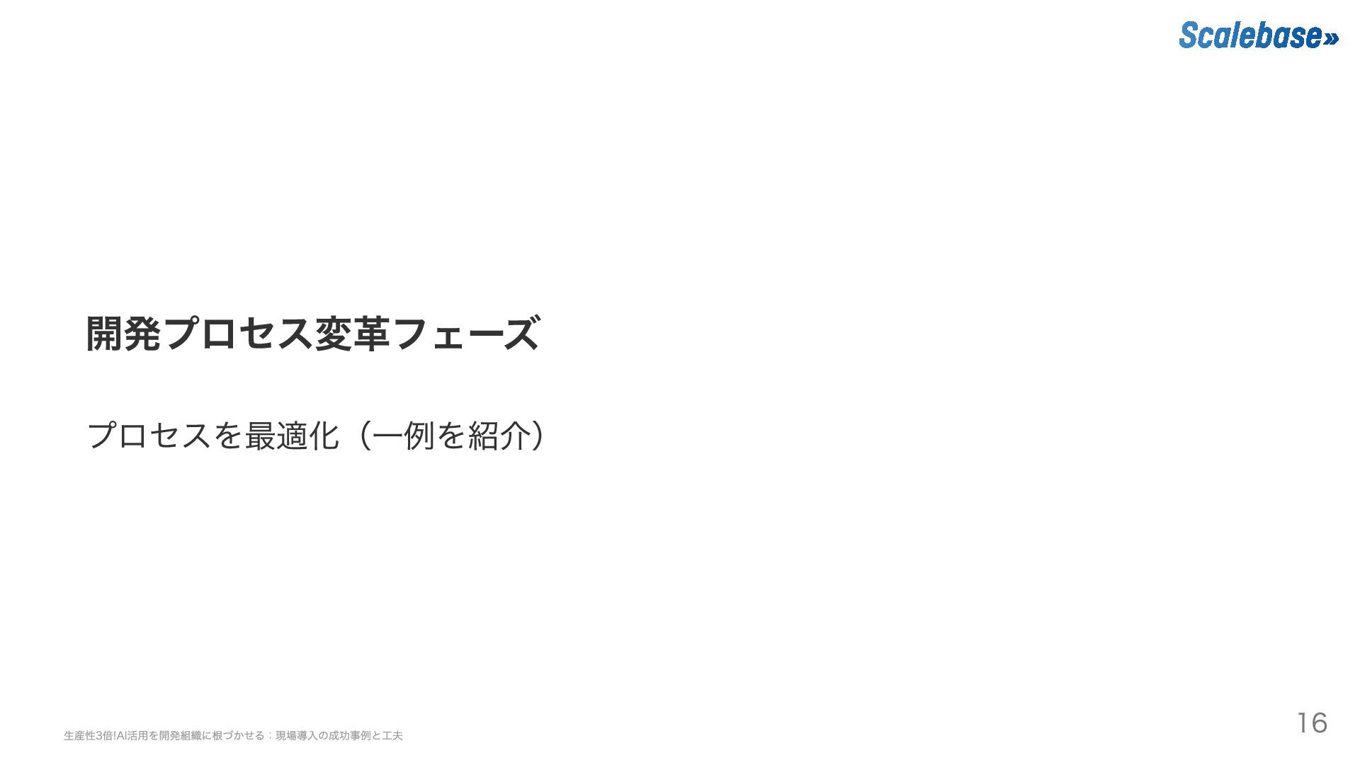 開発プロセス変革フェーズ プロセスを最適化(一例を紹介) 生産性3倍!AI活用を開発組織に根づかせる:現場導入の成功事例と工夫 16