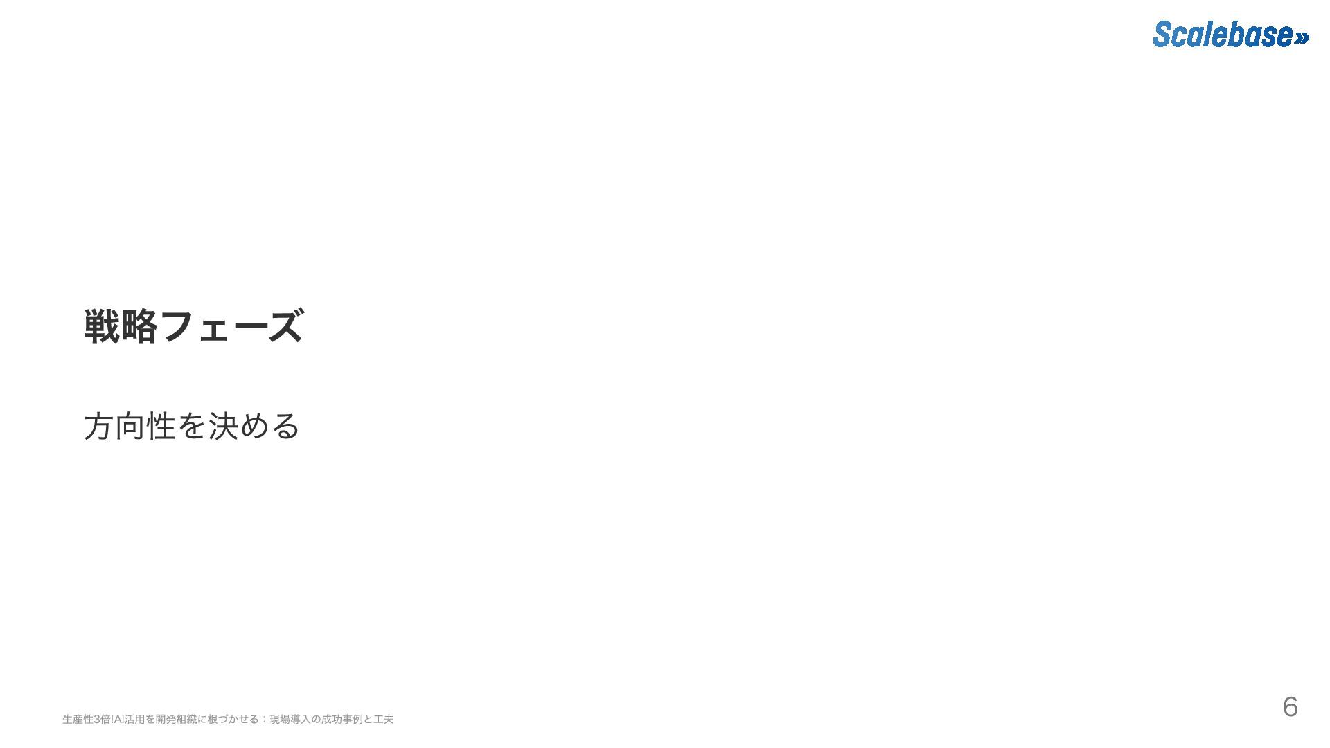 戦略フェーズ 方向性を決める 生産性3倍!AI活用を開発組織に根づかせる:現場導入の成功事例と工夫 6