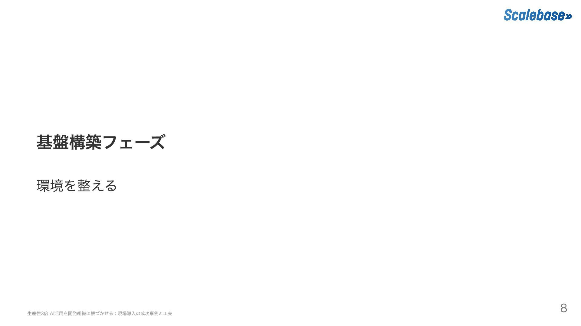 基盤構築フェーズ 環境を整える 生産性3倍!AI活用を開発組織に根づかせる:現場導入の成功事例と工夫 8