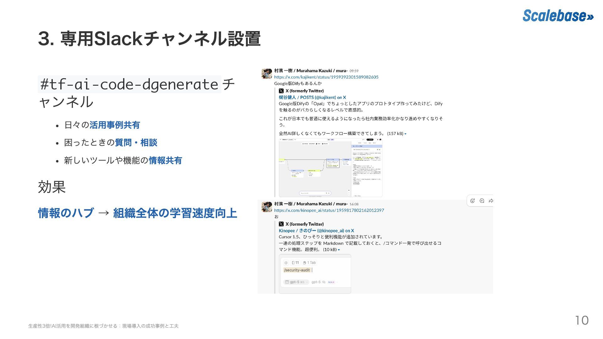 → 組織全体の学習速度向上 生産性3倍!AI活用を開発組織に根づかせる:現場導入の成功事例と工夫 10
