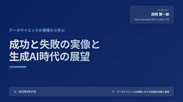 の廃止により個人に紐づいた行動ログの取得が困難に。 問題点 会社の方針で「AI を使いたい」という、手段が目的化した状況。 データの断片性と紐付け不可能性という根本的制約を無視。 複雑なモデルを作ることに固執し、そもそもデータの質についての検証が不十分。 結果 モデル精度が低いだけでなく、予測できたとしても個々のユーザーに適用できず。 技術的に複雑なソリューションを構築したが実用価値ゼロという結果に。 多大な開発リソースと時間を浪費し、データチームへの信頼も低下。 教訓 「garbage in, garbage out 」の原則を肝に銘じること。 テクニカルな複雑さより「そもそもこのデータで何ができるのか」という基本的な問いを最優先に。 目的と手段を取り違えず、ビジネス価値を生む最も単純な解決策から検討する姿勢が重要。 Garbage In Garbage Out 非ログインユ ーザー Cookie 制限 断片化データ 成功例 ✅ 成功例:まず基本的なログイン促進施策から始め、段階的にデータを蓄積してからAI モデルを構築した企業で は、コンバージョンを向上させる施策を実現。