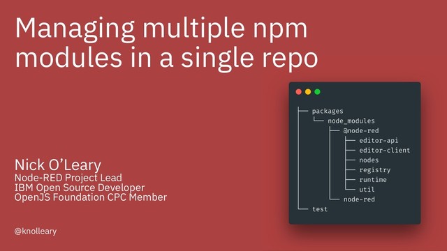 the top- level package.json. Each module has its own package.json that lists only its own production dependencies. At development time, npm install is only run at the top level.
