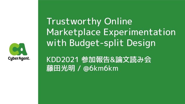 KDD2021 参加報告&論文読み会で " Trustworthy Online Marketplace Experimentation with Budget-split Design"という論文を紹介しました。 https://connpass.com/event/223966/