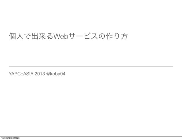 ݸਓͰग़དྷΔWebαʔϏεͷ࡞Γํ YAPC::ASIA 2013 @koba04 139݄20༵ۚ