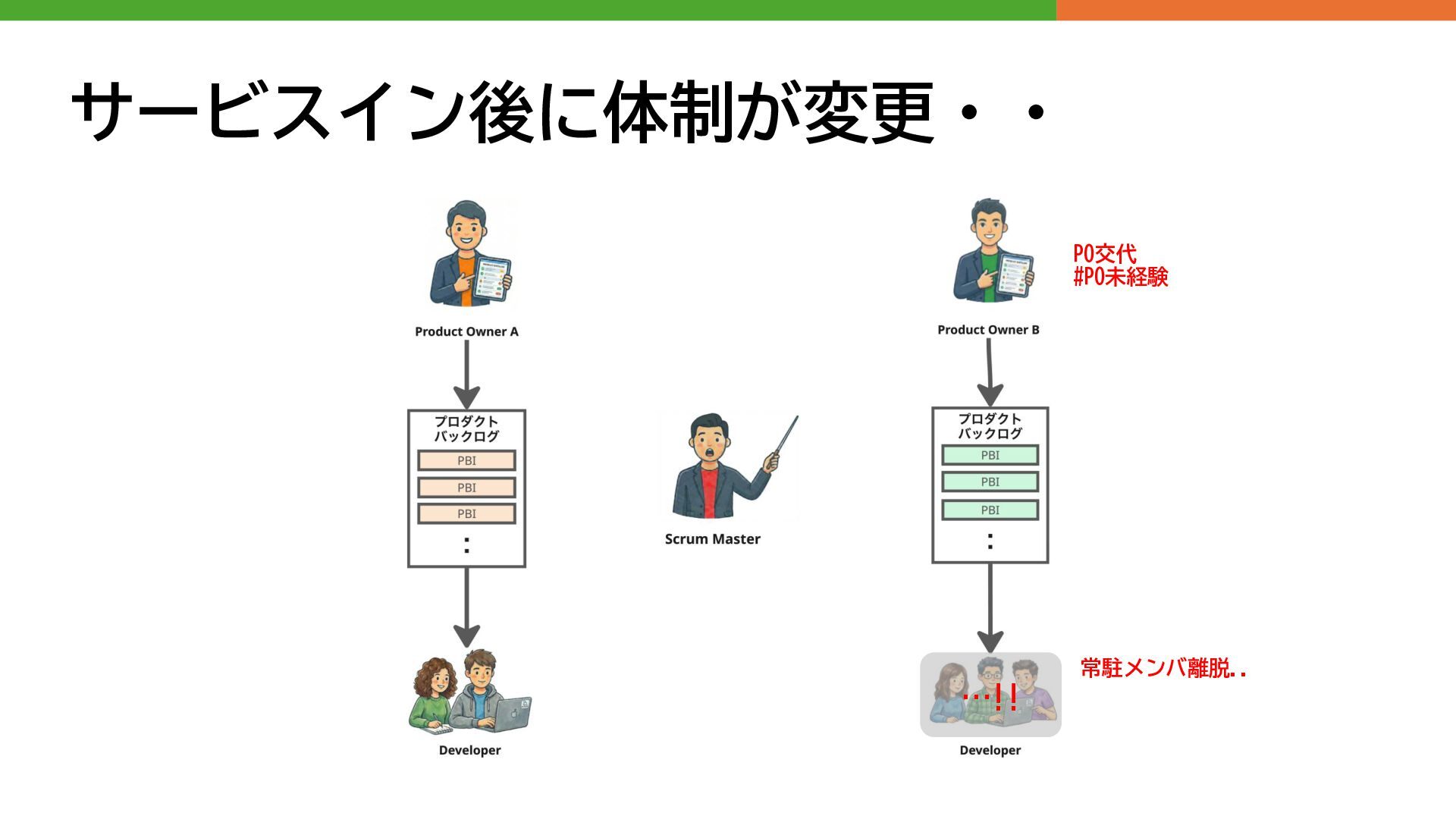 サービスイン後に体制が変更・・ PO交代 #PO未経験 常駐メンバ離脱.. …!!